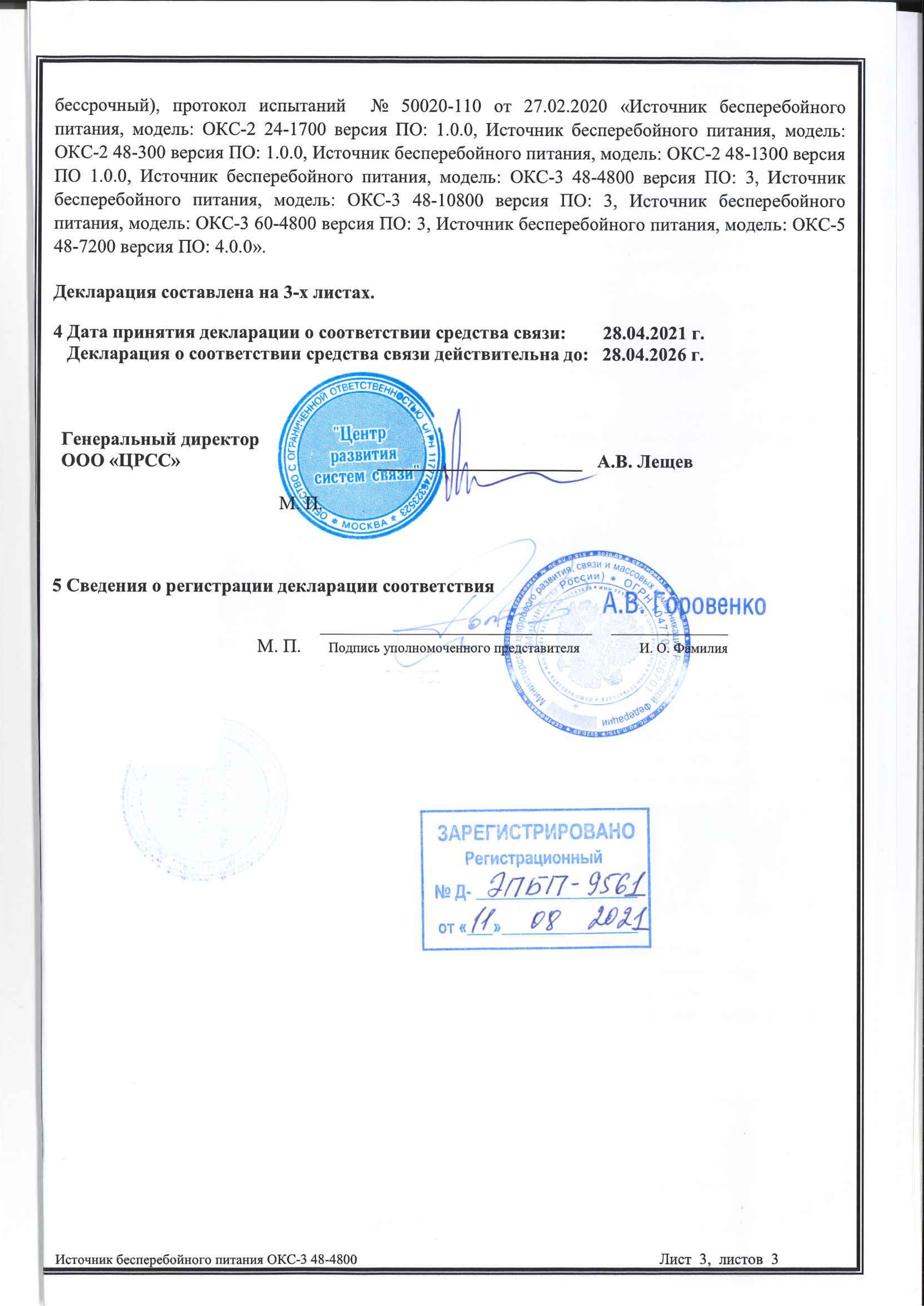 ЦРСС ОКС-3 48-4800-КЭ-2
