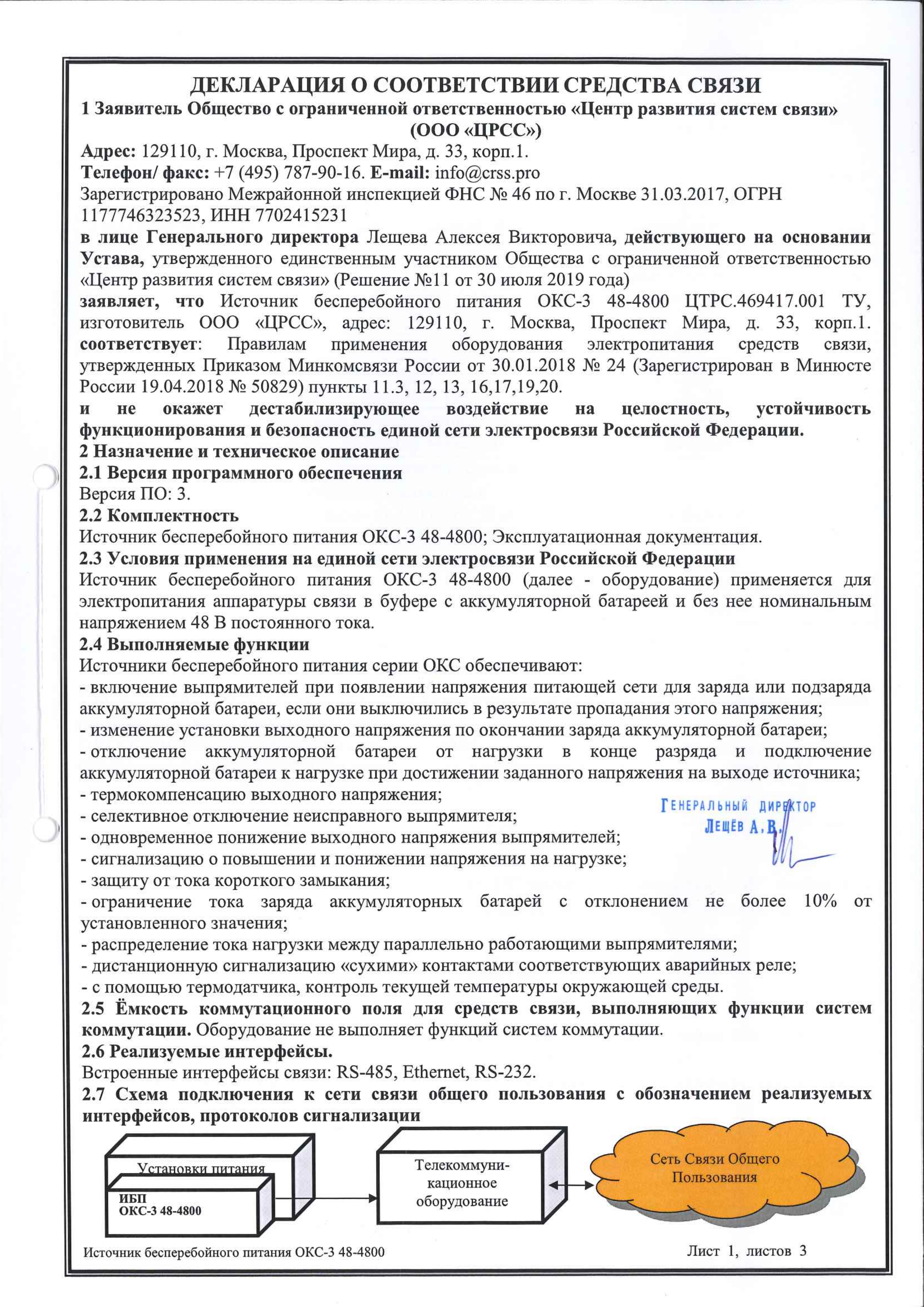 ЦРСС ОКС-3 48-4800-КЭ-3