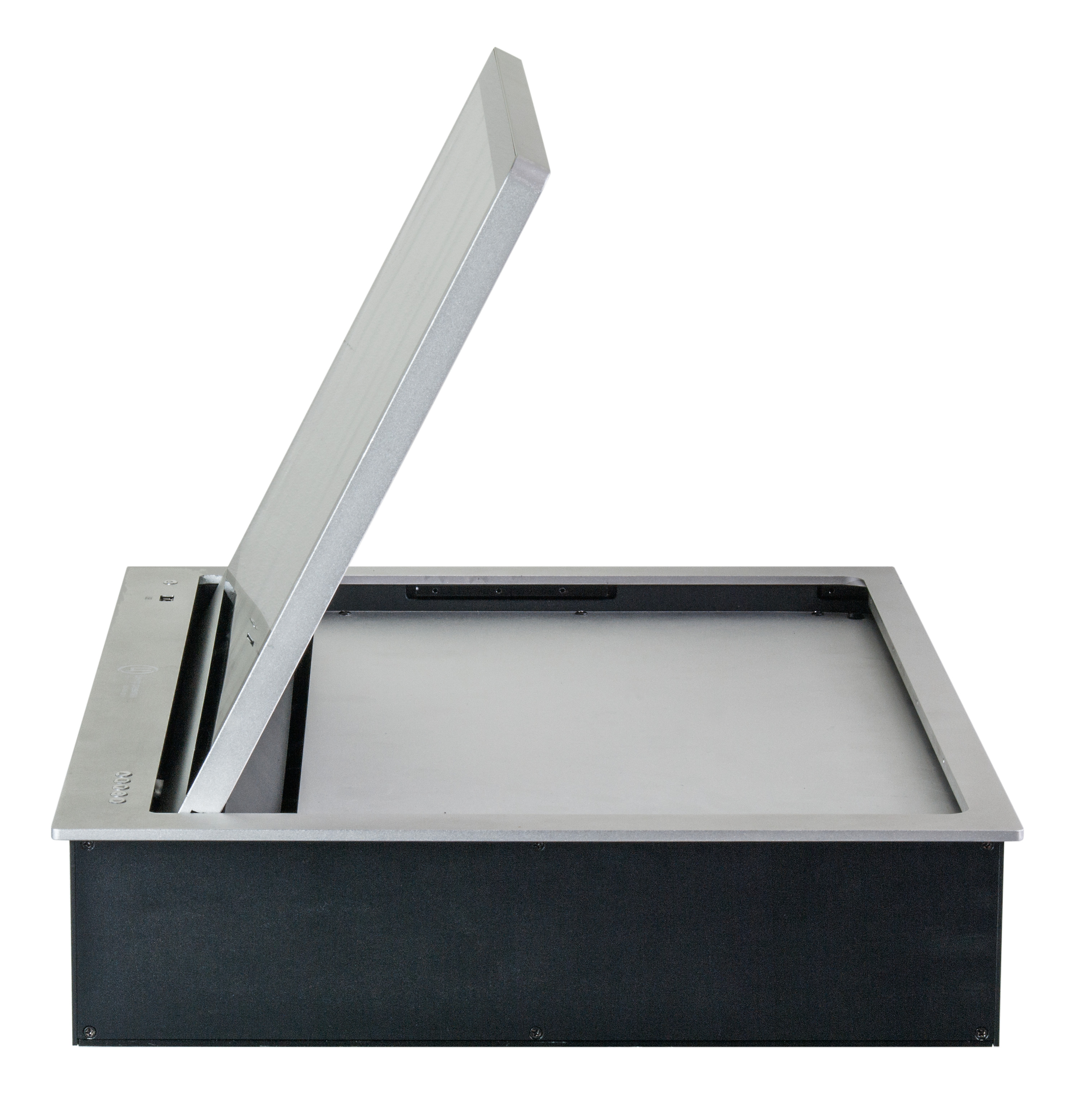 Моторизованный сенсорный монитор 21.5″ предназначен для вывода информации от источников видео сигнала, встраивается в офисную мебель.