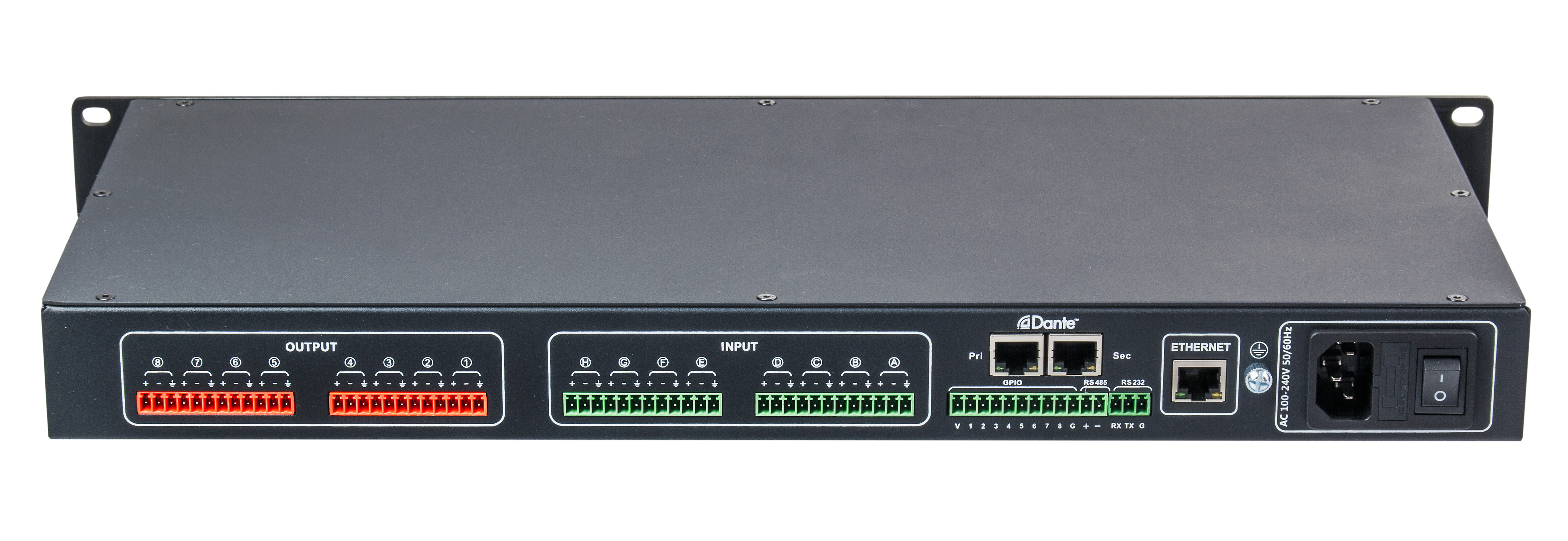 Аудиопроцессор 8х8, Dante 4x4 предназначен для построения трансляционных или музыкальных систем.